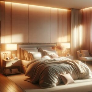 足元や部屋の隅などで赤系の光の間接照明をつけるとよいでしょう。